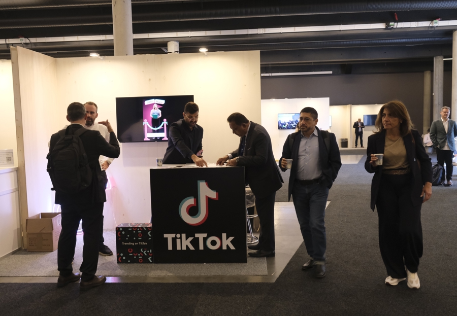 6月24日,在挪威利勒斯特伦举行的第20届联合国互联网治理论坛上,与会者在企业和机构展台参观。新华社图