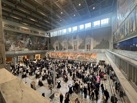 让我久久难忘的,是开幕式前夜在奥斯陆市政厅的欢迎招待会。那是诺贝尔和平奖的颁奖地,四壁布满巨幅壁画,讲述着挪威的历史与社会生活。当联合国副秘书长和挪威官员在这里谈论数字治理时,我突然意识到:我们今天讨论的议题,和过去人类追求和平、公正、平等的努力,其实是同一条延续的脉络。数字治理并不是抽象的“高大上”议题,而是关乎每个人的现实生活。无论是人工智能带来的机遇,还是数字鸿沟带来的挑战,最终都会影响你我。我们追求的是作为“人的存在”,我们希望技术朝着“以人为本、智能向善”发展。从利勒斯特罗姆出发,我看到的不只是一个论坛的20周年,而是给不确定的全球数字治理未来带来了更多确定性。